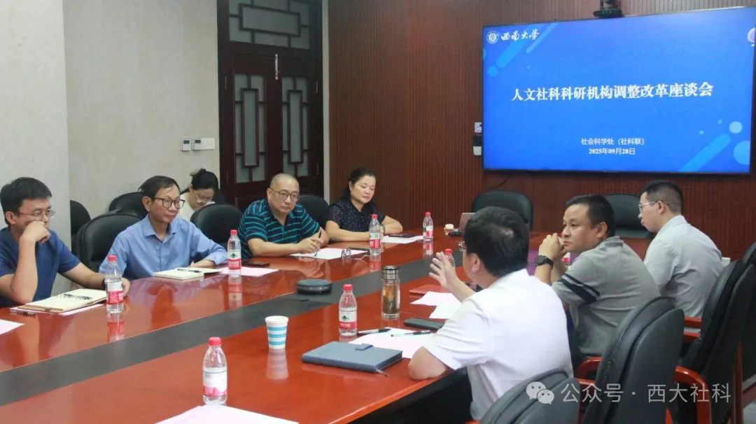 为优化科研资源配置,促进学科交叉融合,学校于2025928日召开人文社科科研机构调整改革座谈会。会议由社会科学处处长罗超平主持,学校党委常委、副校长邹芙都,发展规划与学科建设部相关负责人、学校人文社科重点科研机构代表参会。