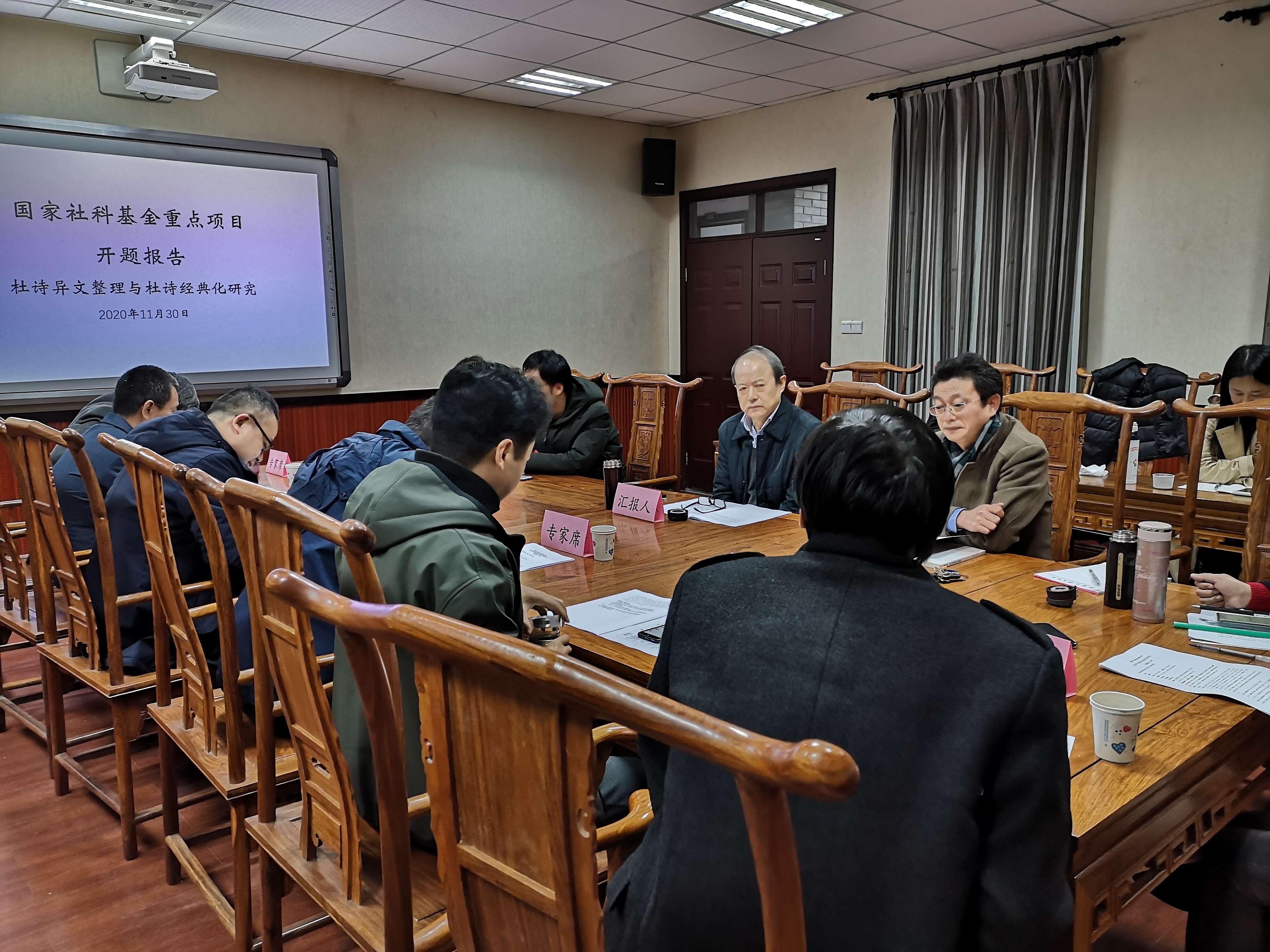 由PA视讯文学院刘明华教授主持的2020年度国家社会科学基金重点项目“杜诗异文整理与杜诗经典化研究”开题报告会,于2020年11月30日下午在重庆国学院会议室举行。出席开题报告会的领导和专家有:山东大学人文高等研究院孙微教授、湖南师范大学文学院曾绍皇教授、商务印书馆丁波编审、PA视讯文学院何宗美教授、黄大宏教授、PA视讯社会科学处吕刚武副研究员等。全体课题组成员及部分博士、硕士研究生参加了开题报告会。