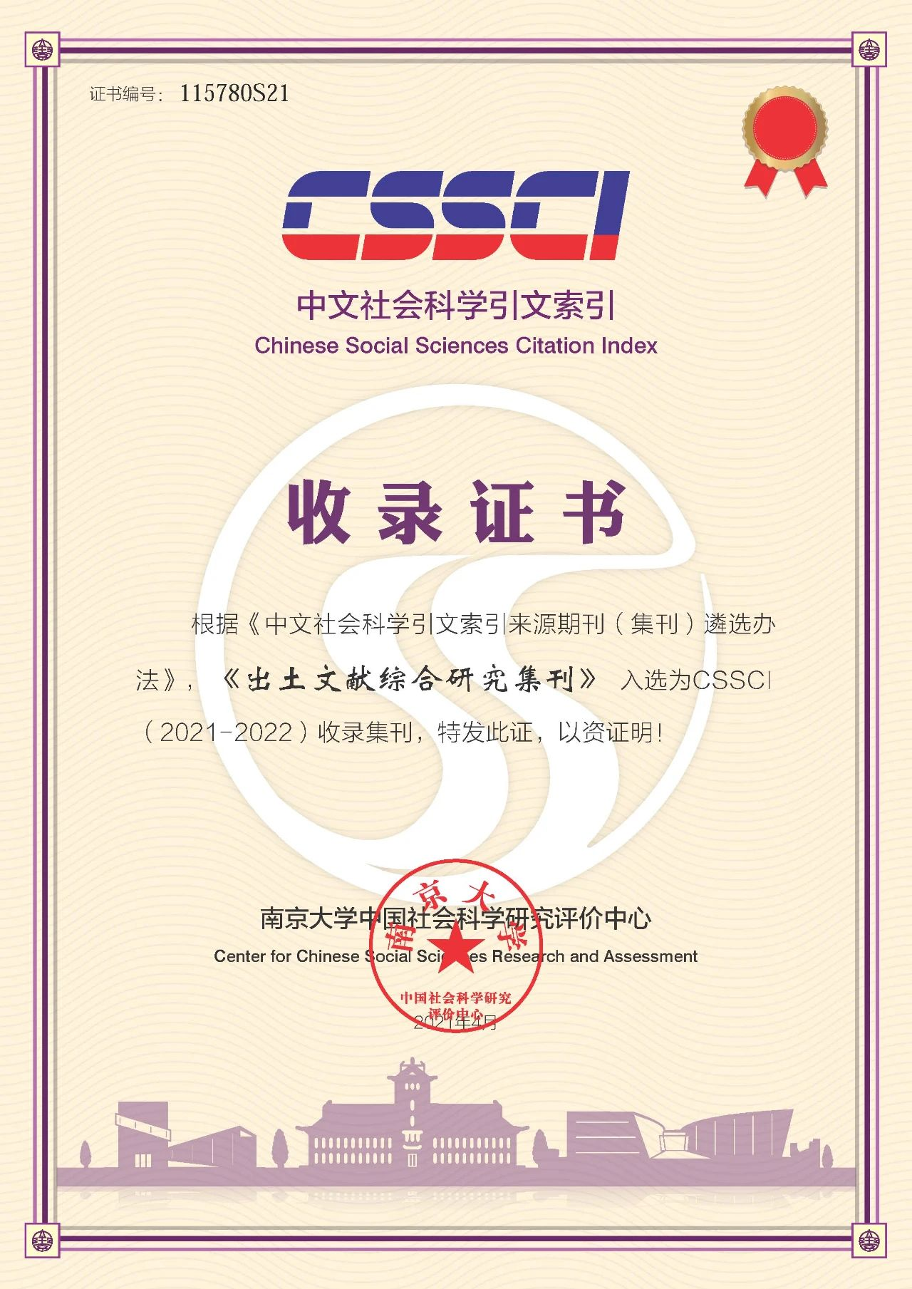 近日,PA视讯汉语言文献研究所接到南京大学中国社会科学研究评价中心来函通知:根据《中文社会科学引文索引来源期刊(集刊)遴选办法》,《出土文献综合研究集刊》入选为CSSCI(2021-2022)收录集刊。据悉,这是《出土文献综合研究集刊》2014年创刊以来,首次入选为CSSCI来源集刊。