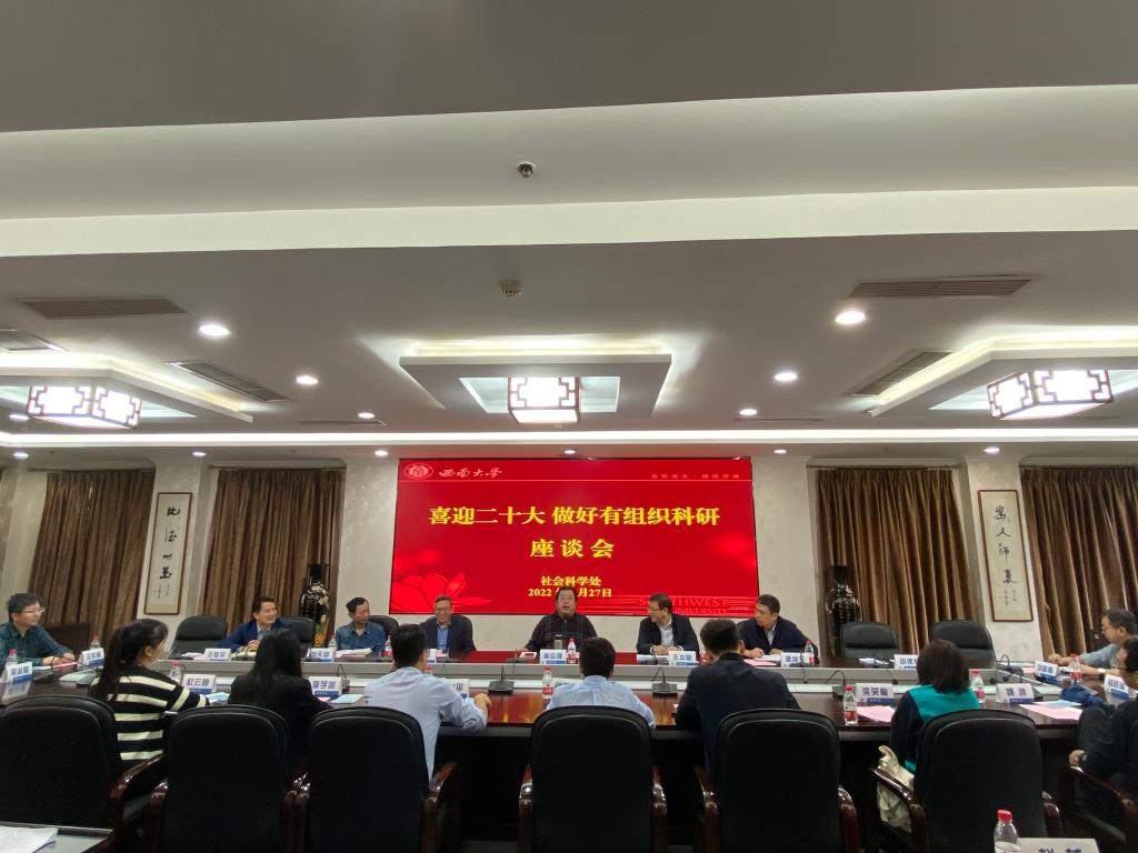 9月27日上午,“喜迎二十大 做好有组织科研”工作研讨会在行署楼A栋第五会议室召开。副校长崔延强、社会科学处及文学院、外国语学院、汉语言文献研究所、中国新诗研究所等单位的领导和专家参加会议,会议由社会科学处处长王牧华主持。