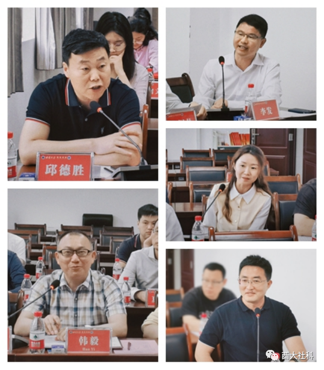 历史文化学院 民族学院副院长赵国壮、汉语言文献研究所副所长王化平、法学院副院长邹兵、乡村振兴战略研究院副院长潘家恩、教师教育学院院长陈恩伦、音乐学院副院长黄君等学院领导分别介绍了学院科研工作组织情况、重大项目申报情况,分享了有组织科研的经验体会。
