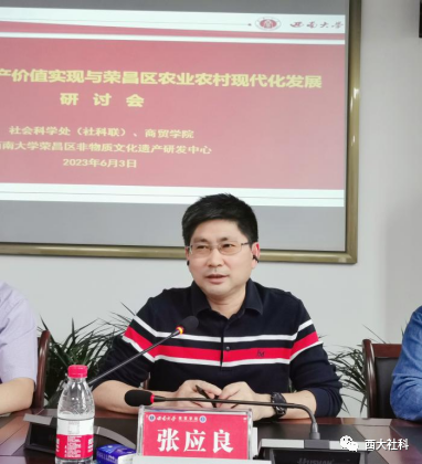 党的二十大以来,学校坚持以“大问题”为导向,以有组织科研赋能哲学社会科学发展,积极抢占科研创新制高点。为更好地做好有组织科研,促进非物质文化遗产价值实现与荣昌区农业农村现代化发展,共同学习探讨非物质文化遗产价值实现与乡村振兴协同推进机制研究,以及如何推动成渝双城经济圈建设等问题,6月3日上午,社会科学处(社科联)、商贸学院、PA视讯荣昌区非物质文化遗产研发中心共同举办本次活动。
