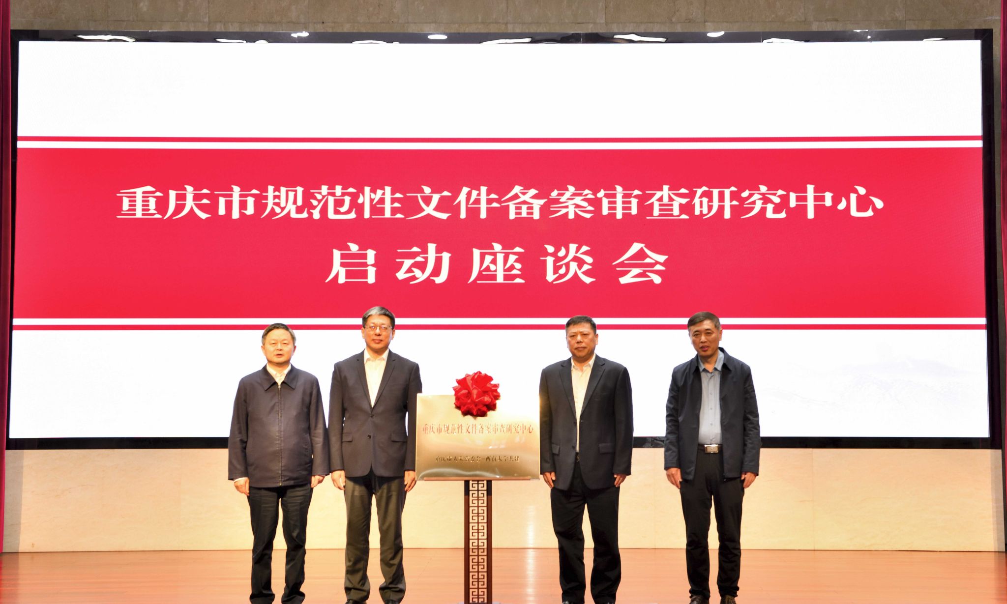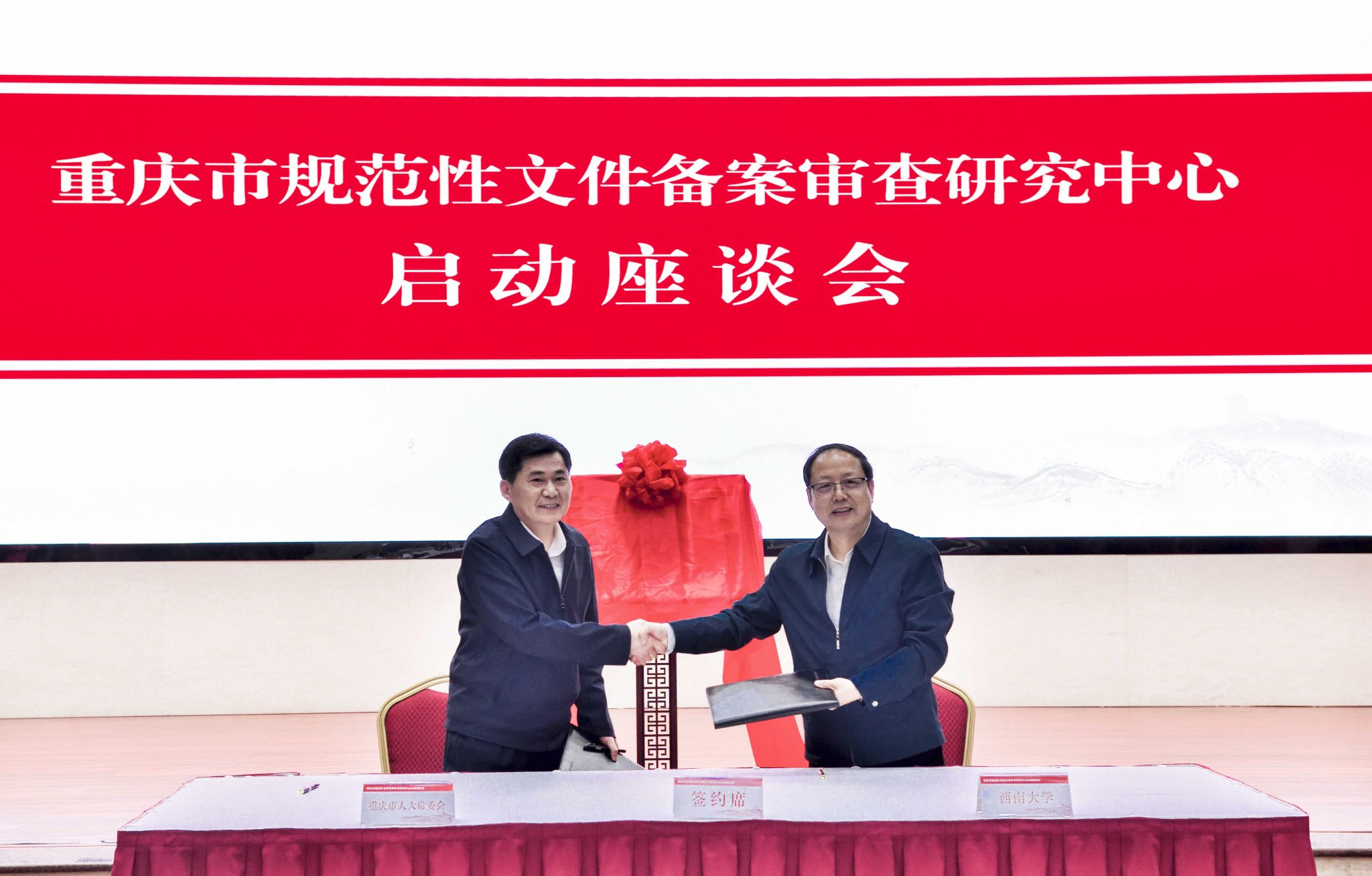 会议通报《重庆市规范性文件备案审查研究中心建设方案》。市人大常委会副秘书长邓炳国与PA视讯副校长周光明签订研究中心共建协议。全国人大常委会法工委副主任张勇、市人大常委会副主任欧顺清、PA视讯校长张卫国、PA视讯党委副书记潘洵为中心揭牌。