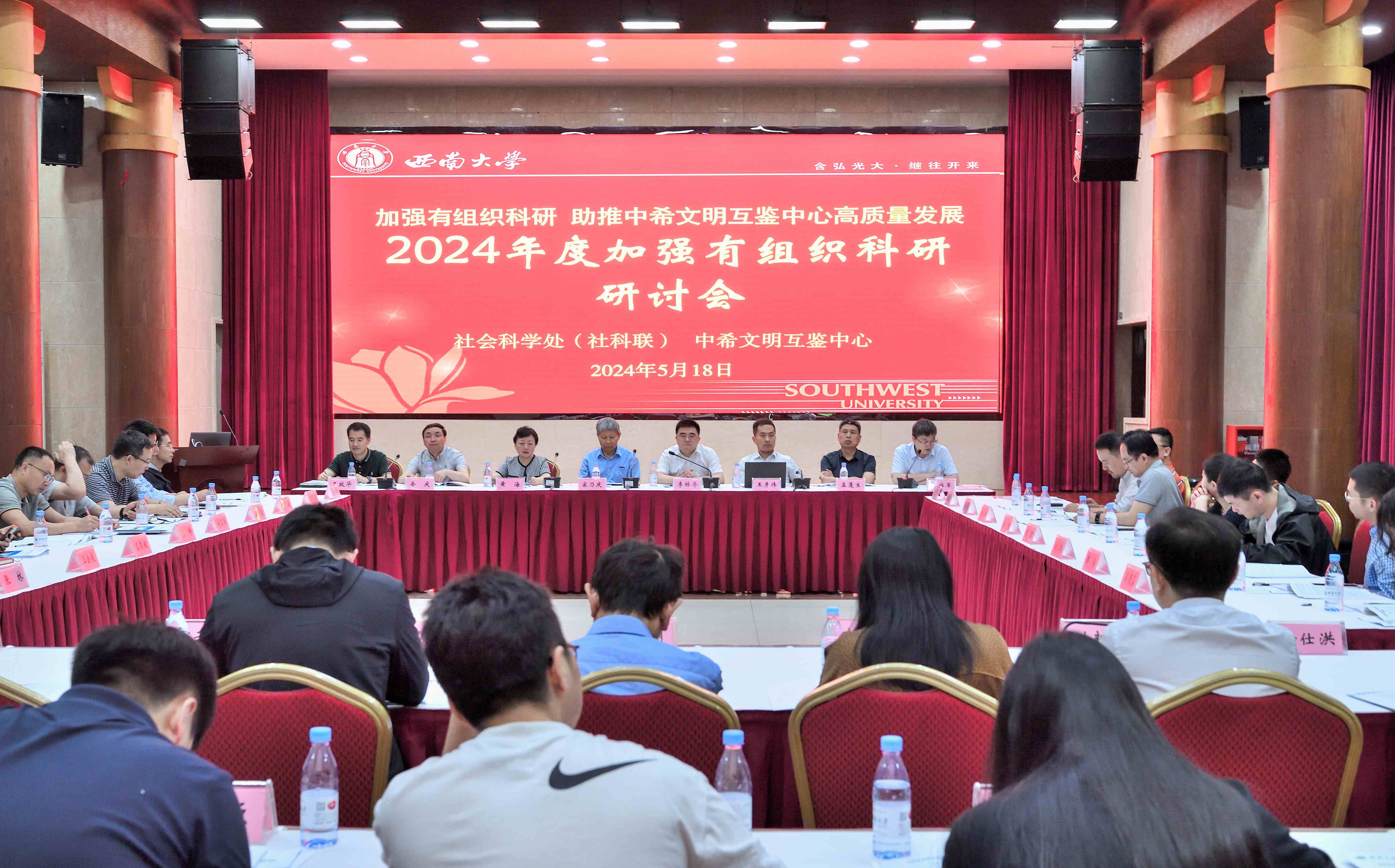 5月18日上午,2024年度加强有组织科研研讨会在学校举行,会议主题为“加强有组织科研助推中希文明互鉴中心高质量发展”。重庆市教委宣教处处长李林齐、重庆市社科联规划评奖办一级调研员、市智库办执行副主任黄海、中国人民大学科学研究处副处长关晓斌、山东大学人文社科研究院副院长王彦伟、四川大学社会科学研究处副处长查庆、PA视讯原常务副校长宋乃庆,以及PA视讯人文社科二级单位分管科研领导、市级人文社科重点研究基地和新型智库相关负责人、中希文明互鉴中心相关工作人员以及社会科学处相关工作人员等40余人参加会议。开幕式由社会科学处副处长王作军主持。