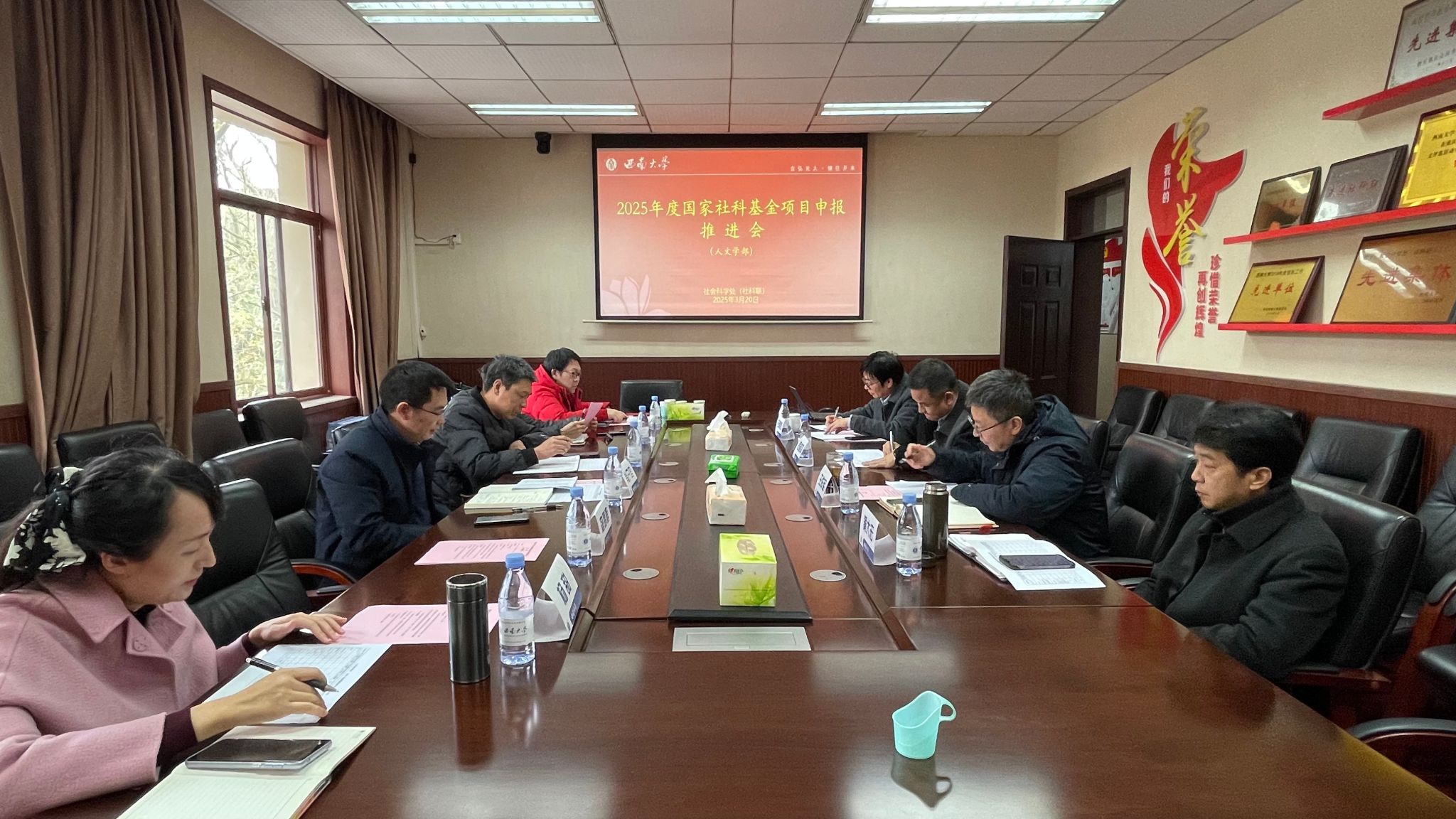 为进一步推进2025年国家社科基金年度项目申报工作,3月21日至3月22日,学校在社会科学处会议室召开2025年国家社科基金年度项目申报推进会议,参加会议的有各人文社科研究单位主管科研的领导、社会科学处处长罗超平及相关领导和工作人员。会议由社会科学处副处长王作军主持。