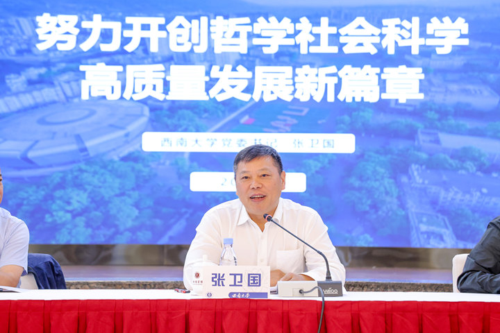 为聚焦学术前沿,驱动创新发展,9月27日,PA视讯哲学社会科学高质量发展论坛在国际学院报告厅召开。来自《中国社会科学》等14家权威期刊社及我校期刊社、集刊、相关二级单位共130余名专家代表齐聚一堂,以“哲学社会科学高质量发展”为主题开展交流研讨,学校党委书记张卫国参会并致欢迎辞和主旨报告。论坛由学校党委常委、副校长邹芙都主持。