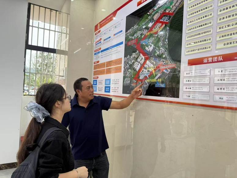 2025年8月11日,会泽县钟屏街道木城社区书记正在介绍产业园规划布局